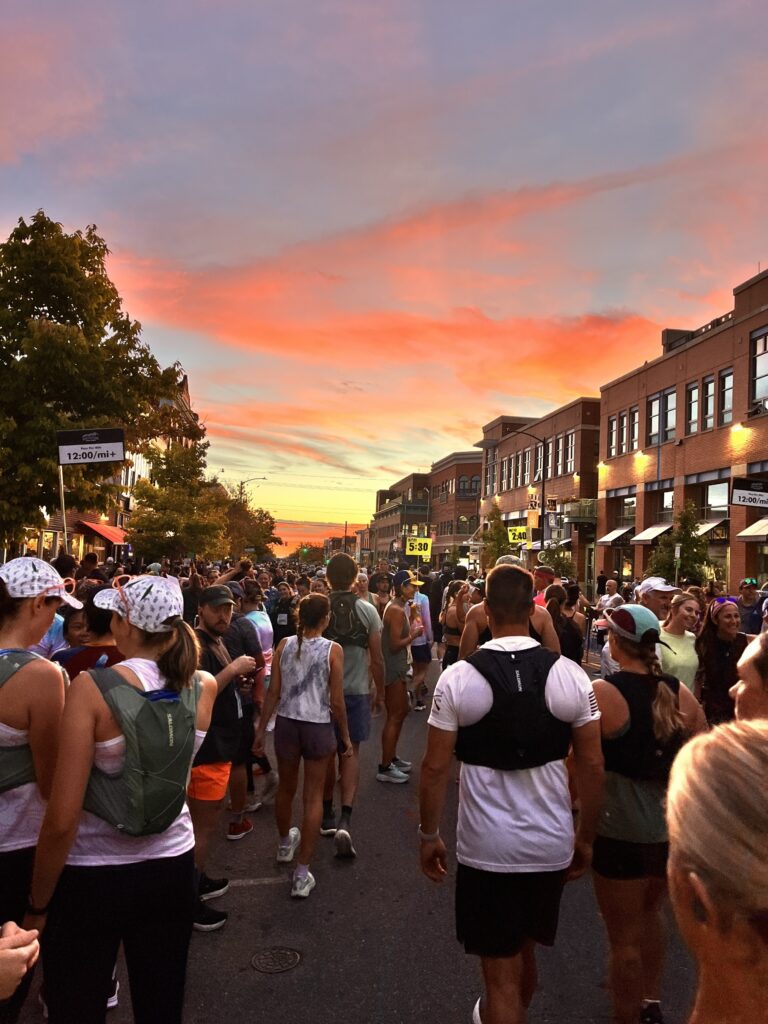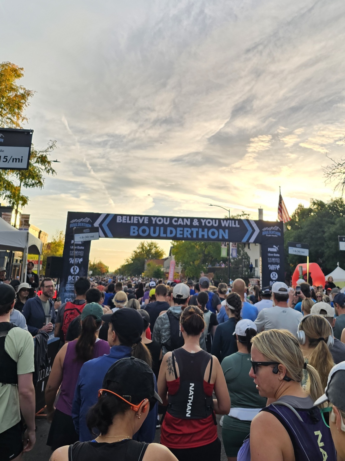 Boulderthon had a LOT of people participating. And everything started and ended right near the popular Pearl Street mall. The corrals weren’t really corrals but Pearl Street was packed. Off in the view was a beautiful sunrise that lit up the sky with vibrant colors.