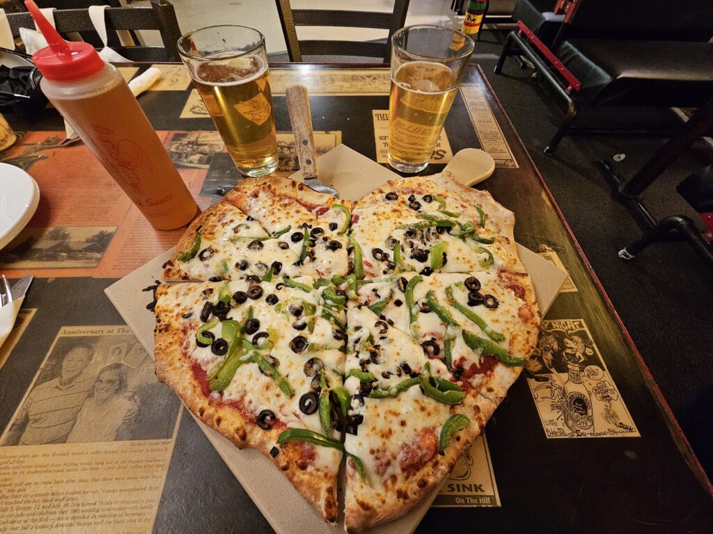 We were doing a tour of breweries in a quest for great root beer and, instead, our quest for great pizza was conquered.