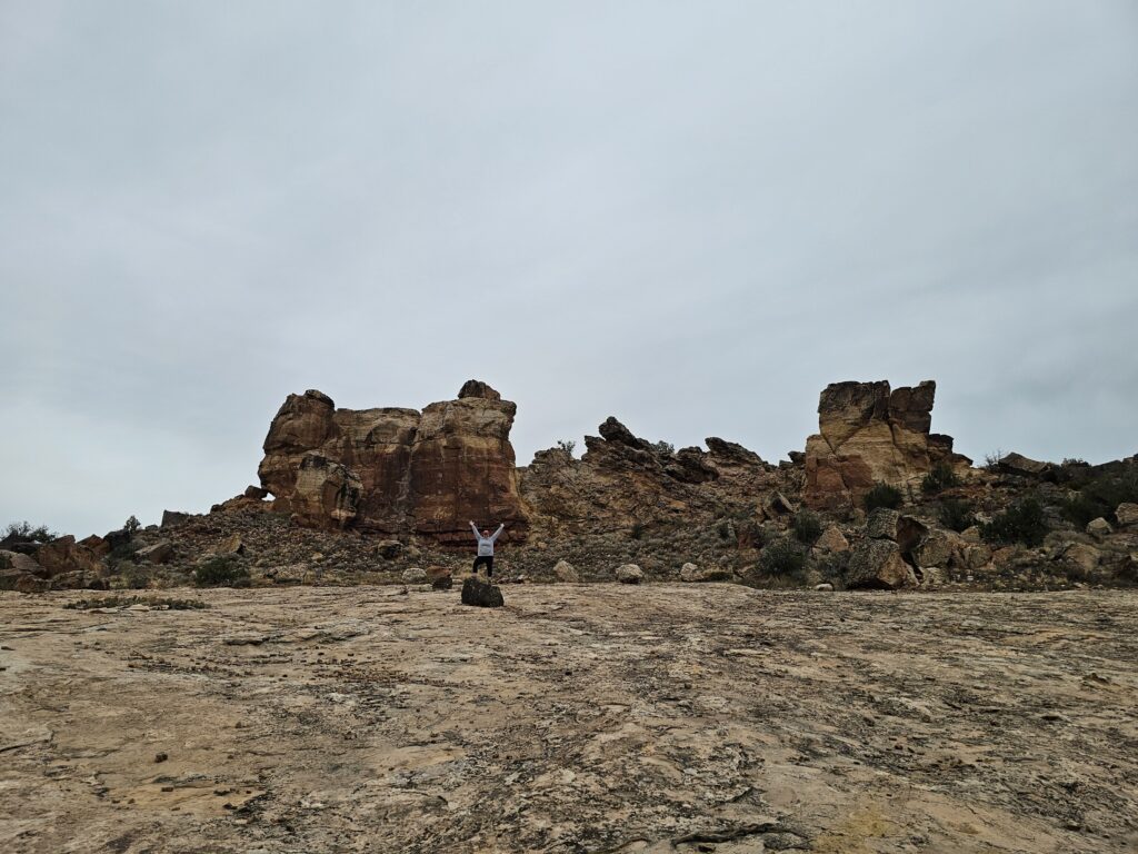That drive would turn out to be the absolute highlight of the trip. We did it clockwise beginning on the road “G” through McElmo Canyon, and stopped at multiple pullouts to take pictures before reaching Castle Rock which is in full view from the Sand Castle trailhead. We actually had a cell signal so I FaceTimed Iris and gave her a tour.